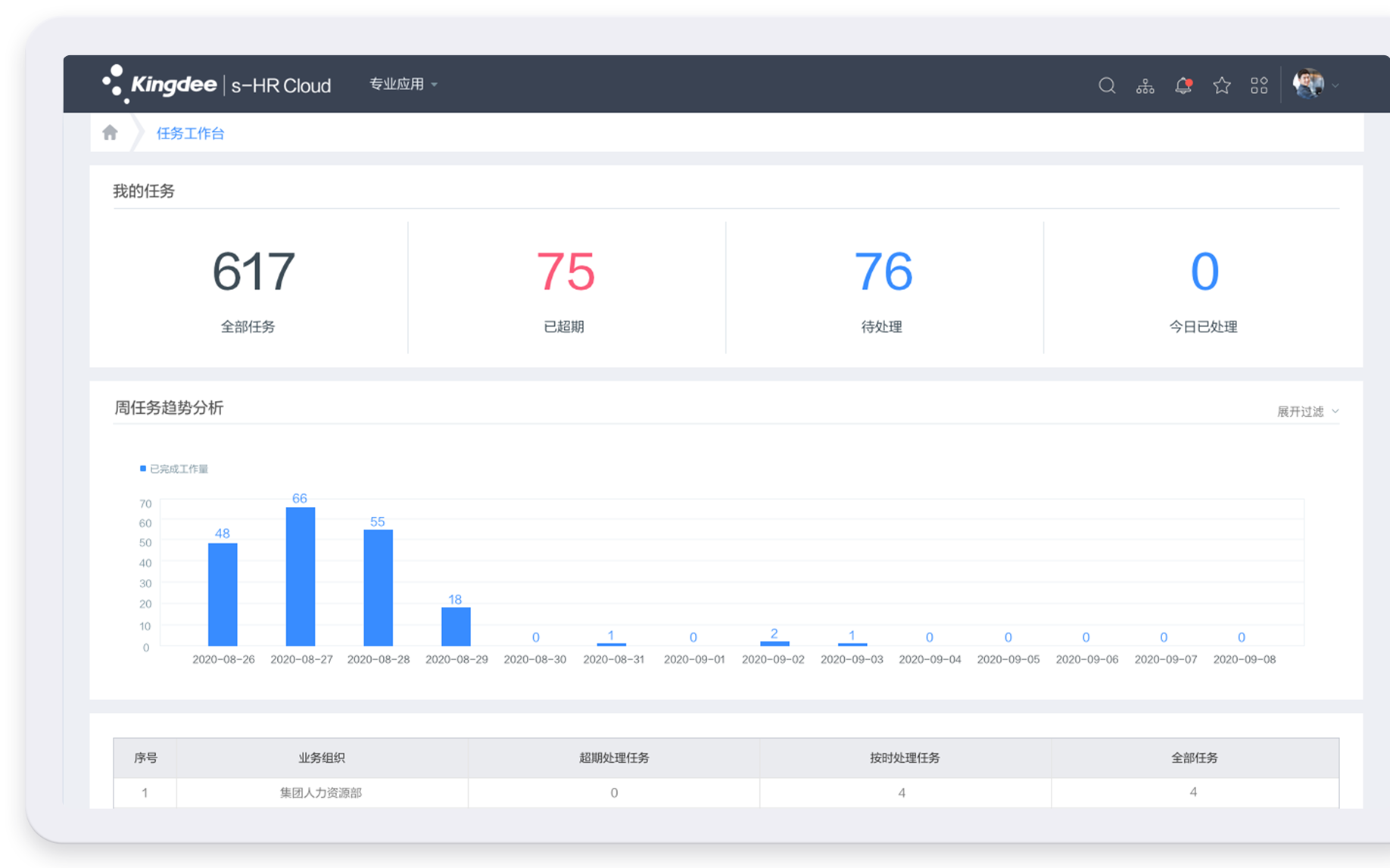 金蝶s-HR基于企业人力资源管理模式创新,通过专业的人力资源管理核心平台、社交化的全员自助服务平台以及开放的云端应用,帮助集团企业构筑核心组织能力。金蝶s-HR应“互联网+”时代对人力资源管理提出的全面挑战,秉承“战略驱动、全员互联、社交协作、人才供给”的4S产品理念,聚焦集团企业的人力资源管理典型需求,为大中型集团企业带来全新的应用体验。